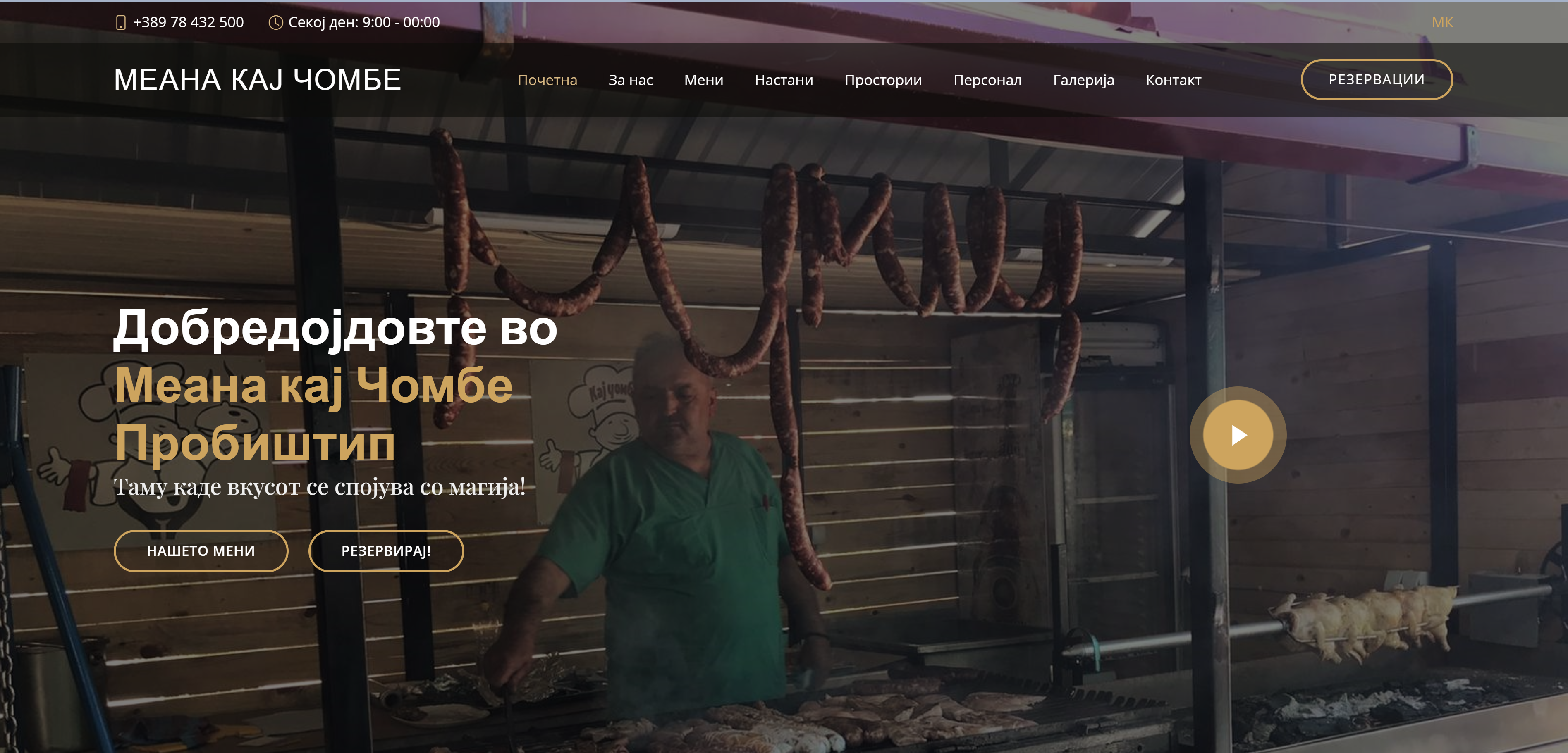 Website for the restaurant Meana Kaj Chombe.