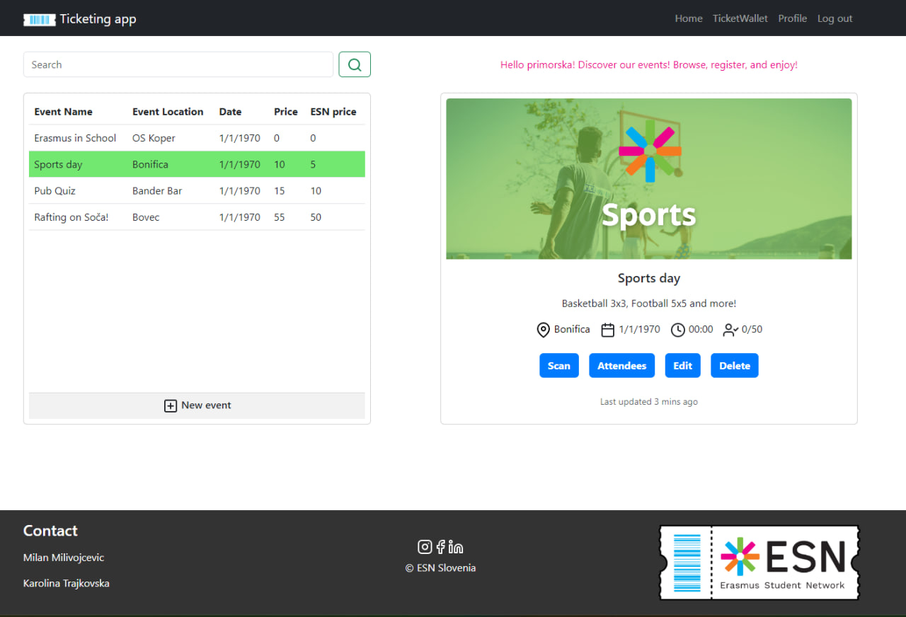 Erasmus Student Network (ESN) Ticketing App